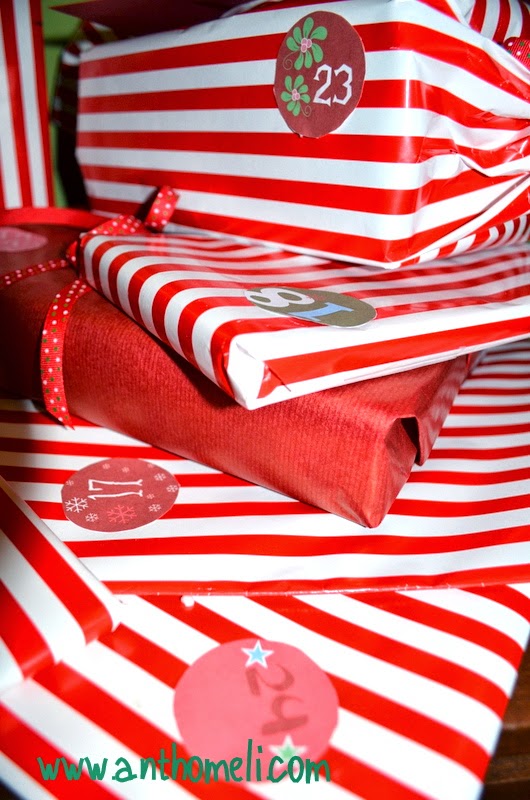Για το πακετάρισμα των δώρων του christmas advent calendar χρειάστηκα: