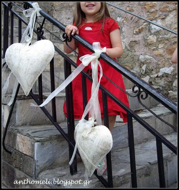 Τα κάγκελα στις εξωτερικές σκάλες του ναού ήταν στολισμένα με μεγάλες καρδιές.