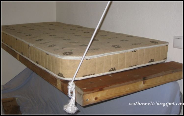 Έβαλε και από πάνω σανίδια για να κάτσει το στρώμα (ευτυχώς στρώμα είχαμε).