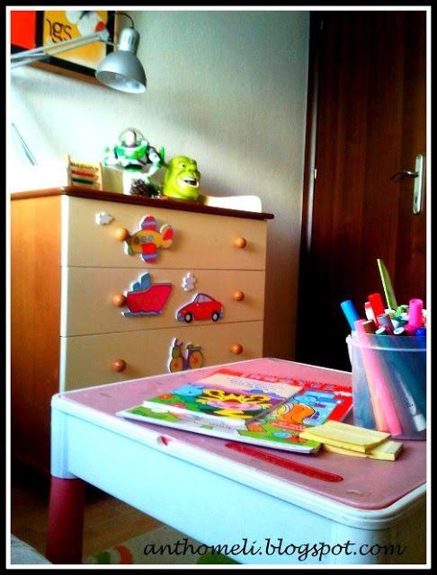 Πάντως ιδέες έχουμε και για την συρταριέρα αλλά πρώτω είναι τα λεφτά που χρειάζονται, δεύτερον περιμένω να πάει στην πρώτη του χρόνου για να του πάρω και γραφείο να δω πως θα τα ταιριάξω!