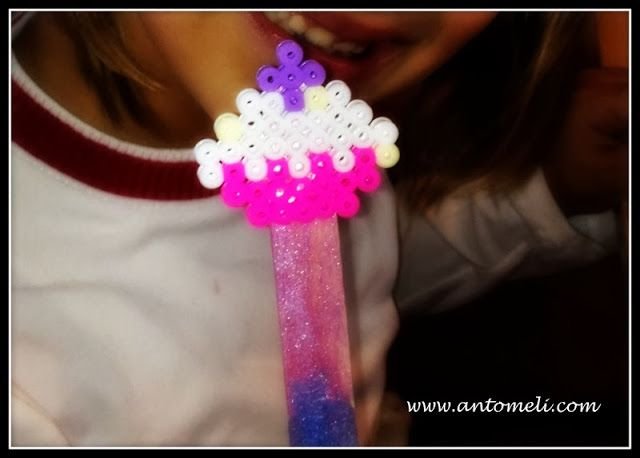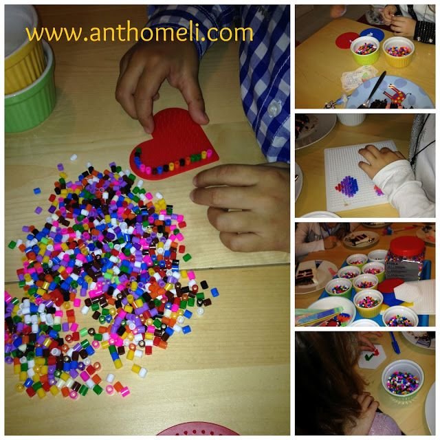 Όμως πάρτυ χωρίς έκπληξη γίνεται; Το πάρτυ τελείωσε με πολύ χειροτεχνία! Χάντρες pyssla που έχουν γίνει η τελευταία μας μανία με τα παιδιά. Τους έδειξα πως φτιάχνουν τα cupcakes με τις χάντρες και μετά φτιάξαμε σελιδοδείκτες.