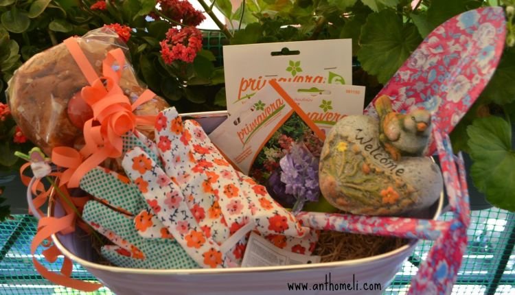 Καλάθι που περιλαμβάνει εκτός από το τσουρέκι δωράκια που σχετίζονται με την ζαχαροπλαστική. Δείτε στην ανάρτηση τις λεπτομέρειες.
