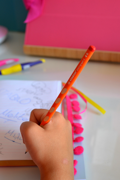Όταν, λοιπόν, η Μελίτα ξεκίνησε την πρώτη δημοτικού σκέφτηκα ότι θα ήταν μια καλή ευκαιρία να πάρω την εκδίκησή μου μέσα από αυτήν! Θα τη βοηθούσα να μάθει να γράφει τέλεια! Αμ δε! Το παιδί μου τα είχε πάρει όλα από μένα! Δύο χρόνια πέρασαν και παρόλο που όταν γράφει συγκεντρωμένα τα γράμματα της είναι αξιοπρεπή τις περισσότερες φορές γράφει σαν να την κυνηγάνε. Έτσι, αποφάσισα να βάλω μπροστά τα μεγάλα μέσα. Κάτι που έπρεπε να είχα κάνει από καιρό αλλά κάλλιο αργά παρά ποτέ! Επιστράτευσα τα προϊόντα γραφής της STABILO και τη σειρά STABILO Easy Start και θα σας πω αμέσως το γιατί.