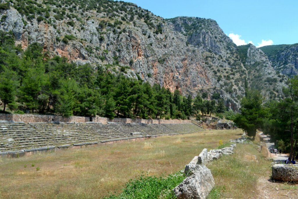 Εάν πάρετε τον ανηφορικό δρόμο από το αρχαίο θέατρο θα φτάσετε μετά από αρκετή πεζοπορία στο στάδιο των Δελφών που εκεί αιώνες πριν χιλιάδες θεατές παρακολουθούσαν αθλητικούς αγώνες. Το στάδιο ήταν πολύ μεγάλο, για τα δεδομένα της εποχής και έφτανε σε μέγεθος τα ρωμαϊκά στάδια. Υπολογίζεται πως χωρούσε 5.000 άτομα. Τον 2ο αι. μ. Χ. το στάδιο εξωραΐστηκε από τον Ηρώδη τον Αττικό και δημιουργήθηκε μια πύλη μοναδική στην Ελλάδα που την κοσμούσαν υπέροχα αγάλματα.