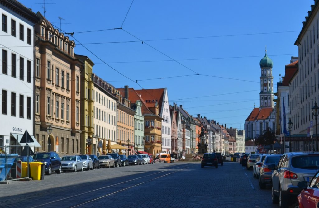 Η πλατεία Rathausplatz του Augsburg (Άουγκσμπουργκ) είναι πολύ όμορφη. Δεν περνούν αυτοκίνητα, μόνο τραμ. Αυτό την καθιστά ένα μέρος για χαλάρωση και ξεκούραση αφού είναι γεμάτη από καφετέριες και εστιατόρια.