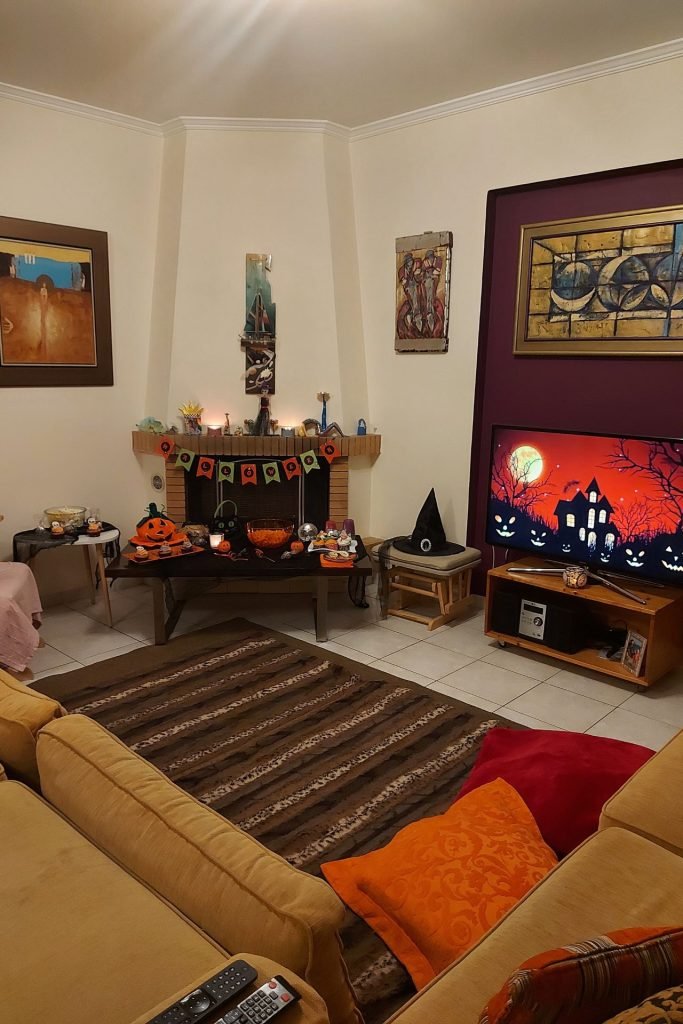 Η προβολή της ταινίας στο σπίτι μας έγινε στο σαλόνι αλλά με τα κορίτσια να κάθονται στο πάτωμα. ‘Eβαλα κάτω μαλακές κουβέρτες και έτσι είχαν όλο το πάτωμα δικό τους. Φυσικά το σκηνικό είχε ήδη στηθεί καθώς κάθε χρόνο στολίζουμε το σπίτι μας a la Halloween. Αλλά εσύ μην σκας, αν δεν έχεις στολίδια από άλλες χρονιές, πλέον τα μαγαζιά είναι γεμάτα. ‘Eνα μπάνερ και μερικά μπαλόνια μαύρα και πορτοκαλί θα κάνουν τη δουλειά τους. A! Kαι να μην ξεχάσεις τα κεράκια και το χαμηλό φωτισμό! Πάρε ιδέες και από τις φωτογραφίες ή μπες σε παλιότερες αναρτήσεις μας (δες παρακάτω).