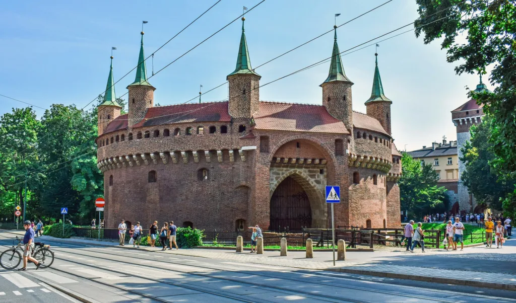Περάσαμε από την Πύλη St. Florian’s Gate και συνεχίσαμε το δρόμο που βρίσκεται μέσα στο δασύλλιο που κυκλώνει την παλιά πόλη έως ότου φτάσαμε σε μια άλλη κυκλική πύλη-οχυρό που βρίσκεται εκεί από τον Μεσαίωνα, το Μπάρμπικαν (Barbakan). Είναι ένα εντυπωσιακό κτίριο που συνδεόταν με τα τείχη της πόλης και ήταν παρατηρητήριο. Σήμερα είναι και αυτό ένα από τα αξιοθέατα της Κρακοβίας και μπορείτε να το επισκεφθείτε, αφού είναι τμήμα του Ιστορικού Μουσείου της πόλης.
